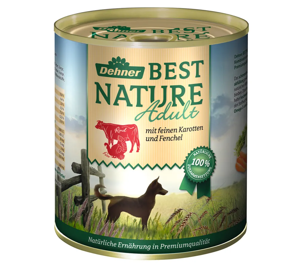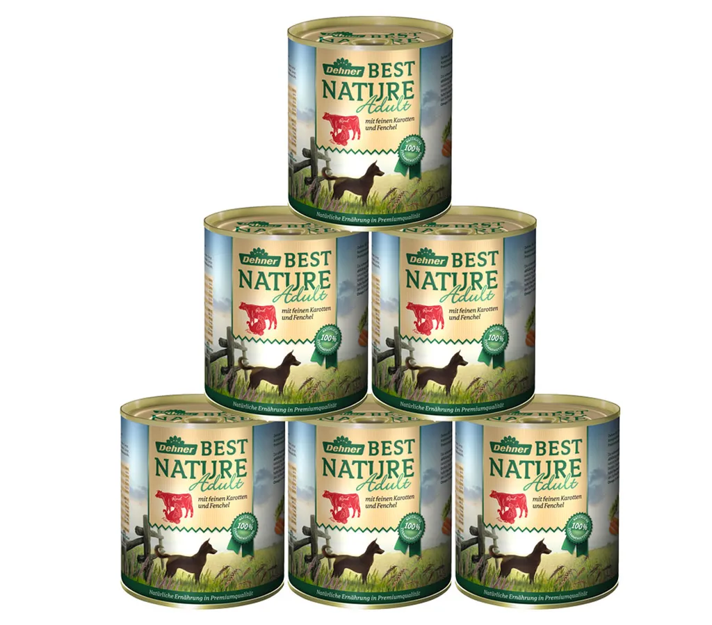 Dehner Best Nature Hundefutter Adult, Rind Und Pute Mit Karotten, 6 X 800 G (4.8 Kg)