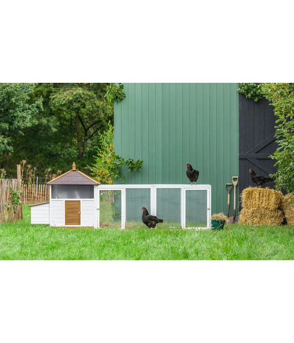 Passend zum Dehner Hühnerstall Florenz können wir Ihnen auch einen Freilauf anbieten. Mit seinem frischen Weißton ergänzt er optisch perfekt den Stall im Landhaus-Look und bietet Ihren Hühnern zugleich einen sicheren Auslauf. Dort sind Ihre Legehennen oder auch Ziergeflügel vor Fressfeinden wie Füchsen, Mardern und Co geschützt.