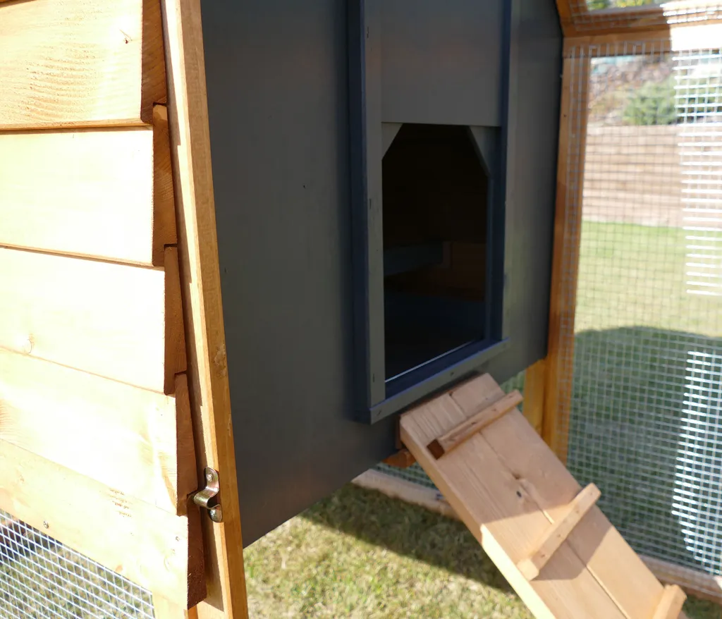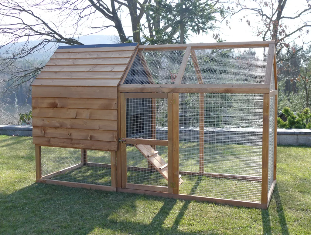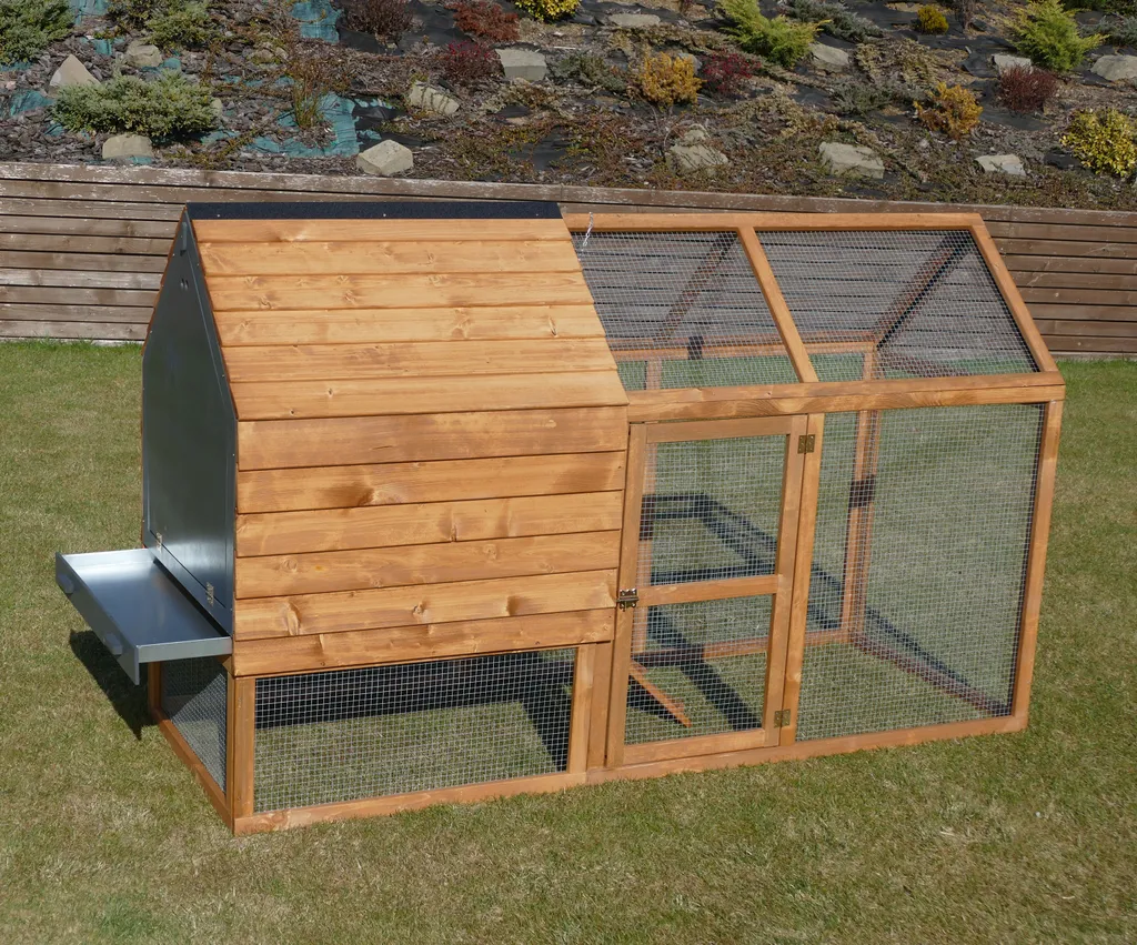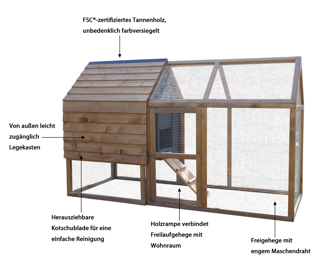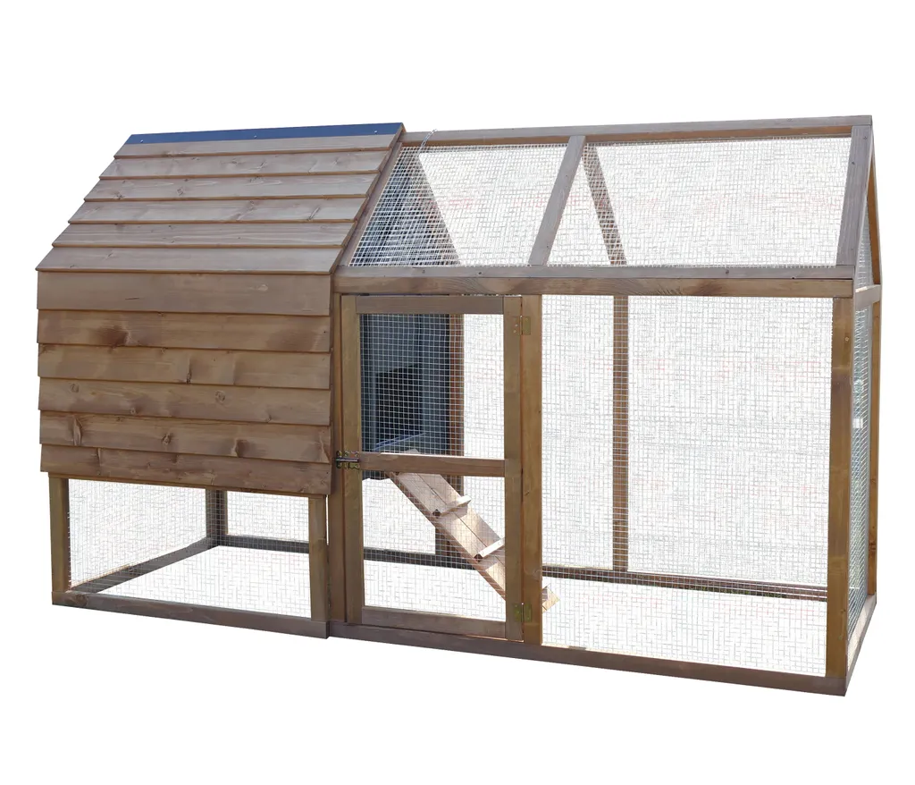Dehner Hühnerstall Megi, Mit Freilaufgehege, Ca. 199 X 76 X 122 Cm, Tannenholz, Hellbraun