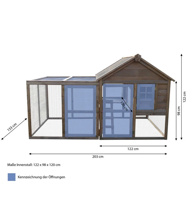 | 1 Holz-/Gittertür Stall: | 34,5/34,5 cm (B/H) |