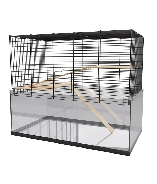Durch die Holzplattformen und Leitern wird der Raum im Dehner Lieblinge Nagerheim Glas Palast ideal für Ihre Tiere genutzt. Sie erhalten neben der attraktiven Glasschale einen robusten Gitteraufsatz mit dem Drahtabstand von 9,9 mm. Ihre Nager werden alles mit Freude nutzen!