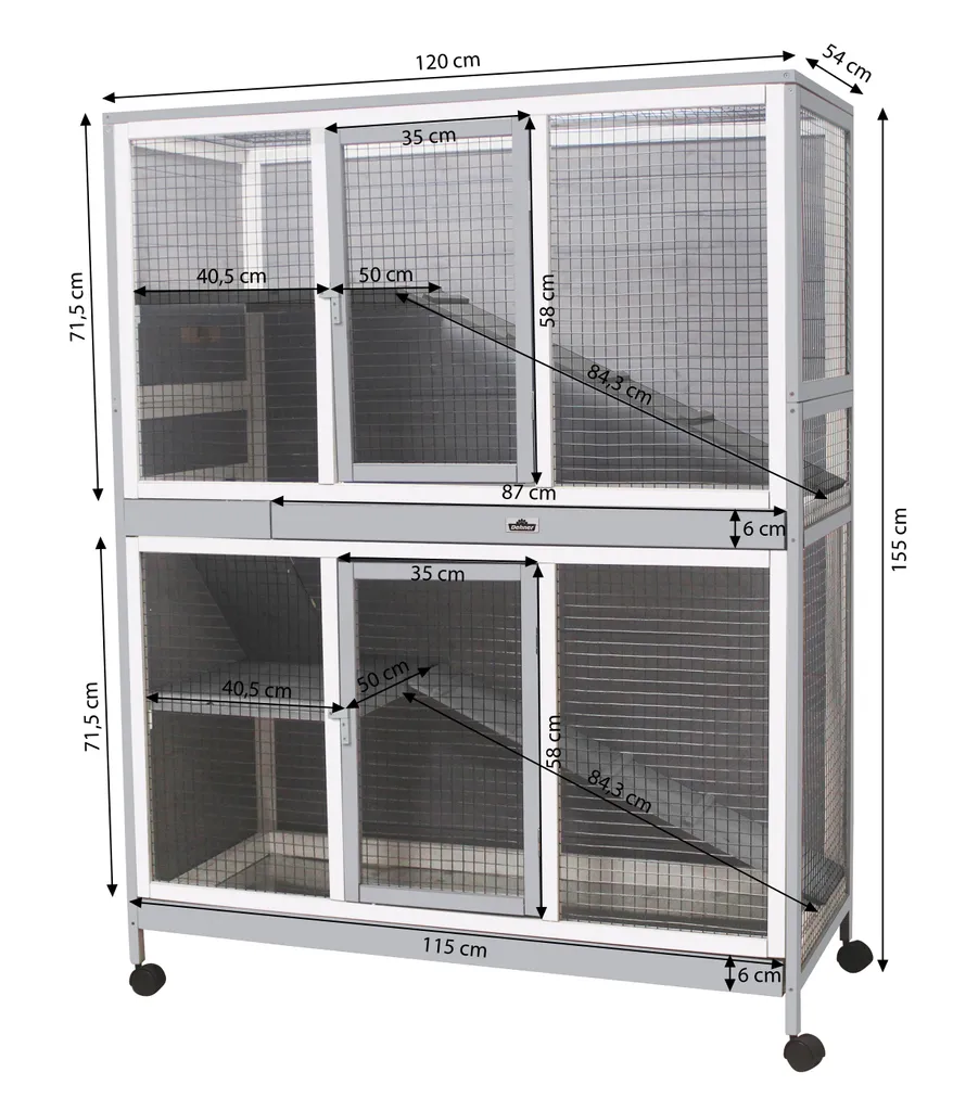 Dehner Lieblinge Nagerheim Nevio, Für Indoor, 155 X 120 X 54 Cm, Tannenholz/Metall, Weiß/grau/schwarz