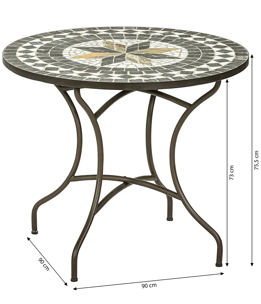 Dehner Mosaiktisch Diana, Ø 90 Cm, Höhe 75 Cm, Stahl/Stein, Braun/grau/weiß