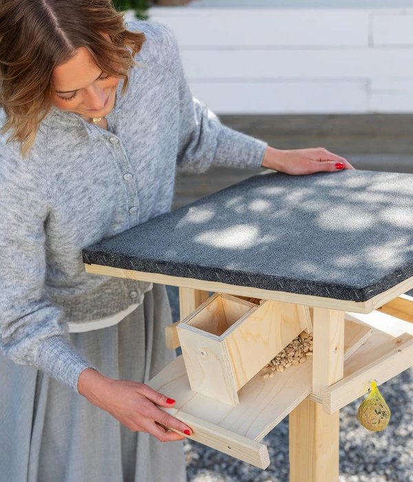 Im Inneren des Häuschens trennt eine Wand den Trog ab, sodass Sie diesen mit unterschiedlichen Futtersorten ausstatten können. Auf diese Weise gewährleisten Sie, dass jeder Vogel seine Lieblingsspeise findet. Damit Sie in der Lage sind, den Behälter problemlos zu reinigen und einfach mit Futter zu befüllen, lässt sich die Schublade praktisch herausziehen. Produziert wird das Vogelhäuschen durch die kompetenten Mitarbeiter der bayerischen Werkstätten für Menschen mit Behinderung der Stiftung Sankt Johannes. Die gemeinnützige Organisation setzt sich dafür ein, dass Menschen mit Einschränkungen eigenständig und erfüllt leben können. Wenn Sie zu diesem Ziel beitragen und Vögel in Ihren Garten locken wollen, dann bestellen Sie jetzt und lassen Sie sich das Futterhaus Karwendel inkl. Ständer von Dehner Natura liefern!