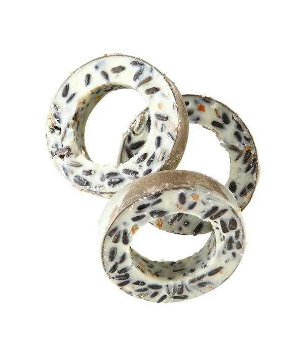 Ein Klassiker auf der Speisekarte vieler Wildvögel: die energiereichen Dehner Natura Meisenringe