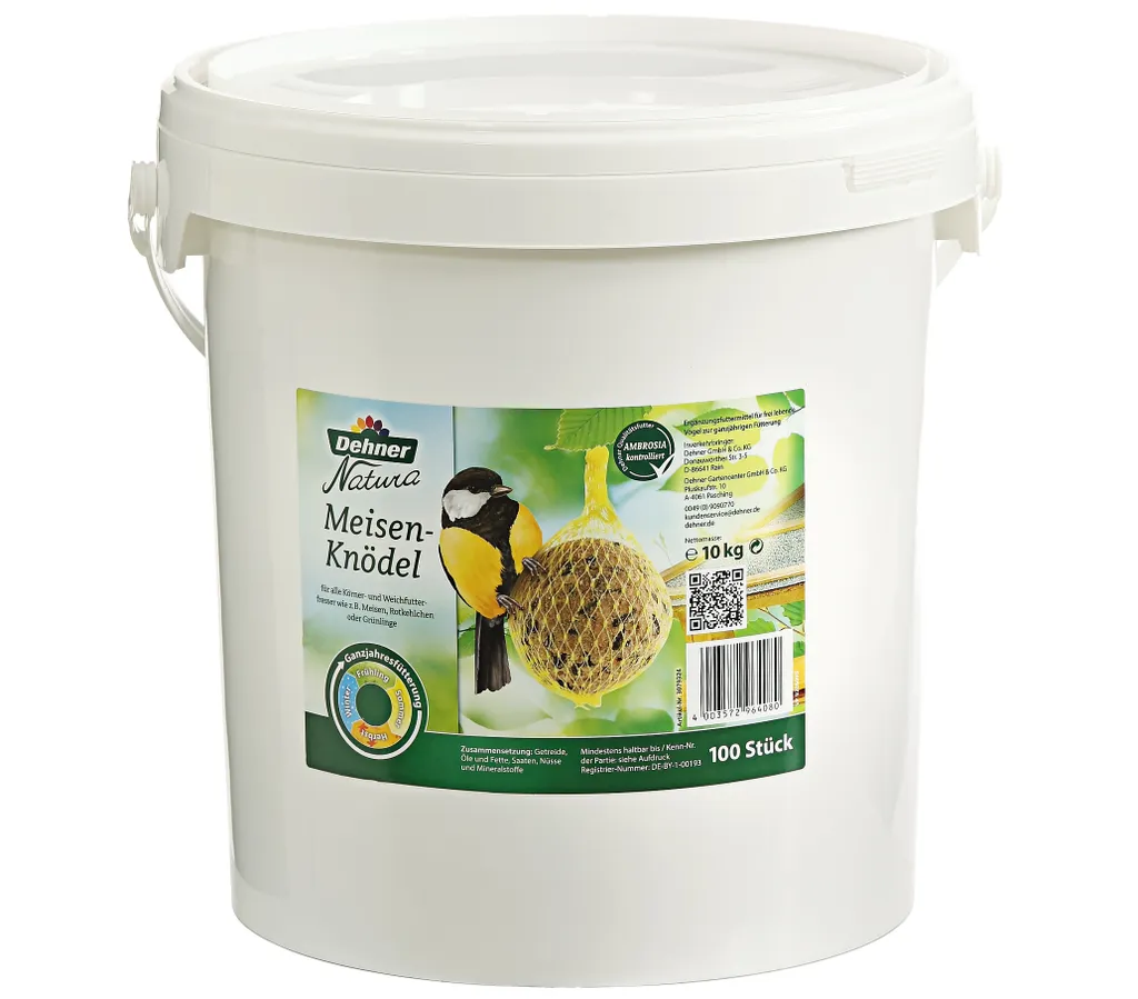 Dehner Natura Wildvogelfutter, Große Meisenknödel, Mit Netz, 100 Stück Je 100 Gramm (10 Kg)