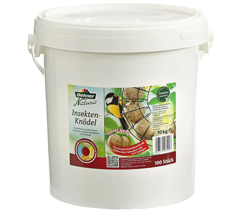 Dehner Natura Wildvogelfutter, Insekten-Knödel, Ohne Netz, 100 Stück (10 Kg)