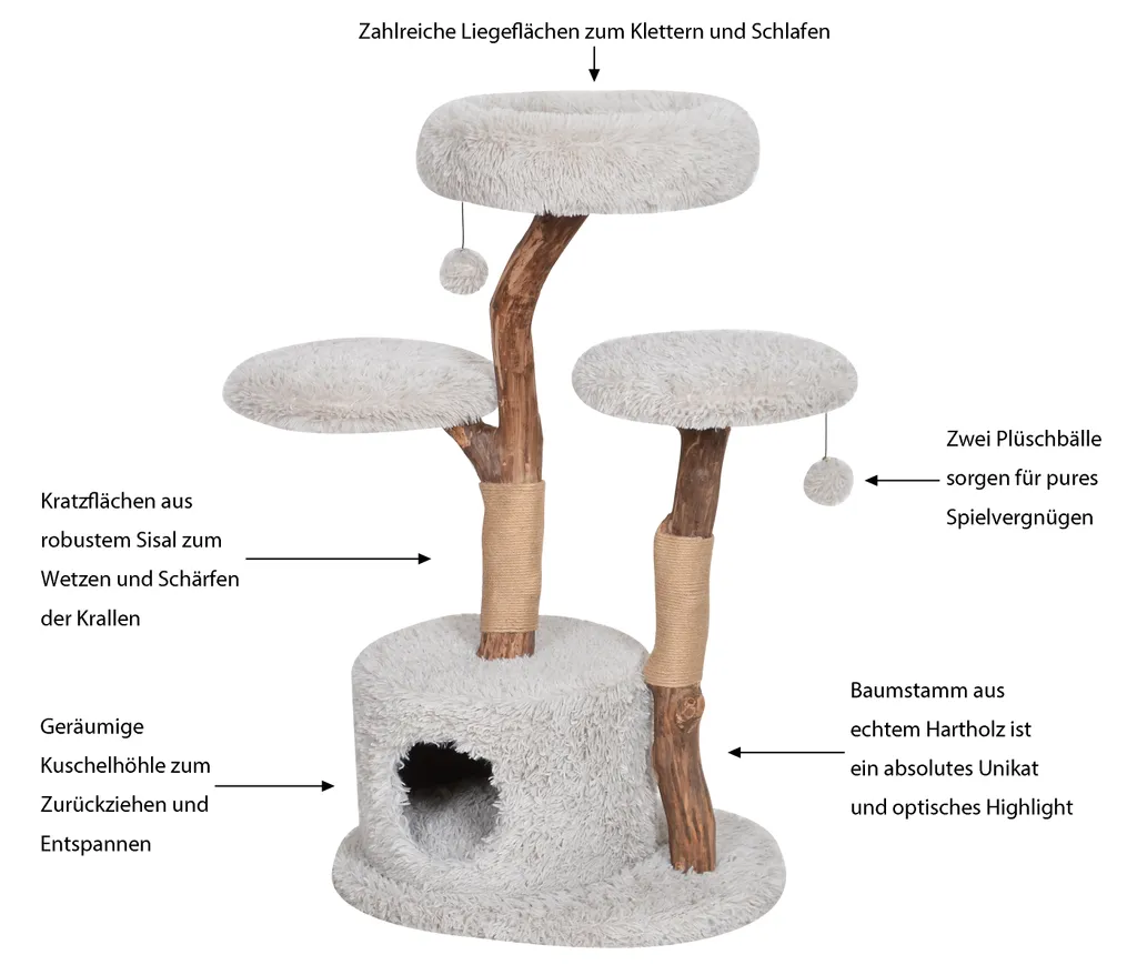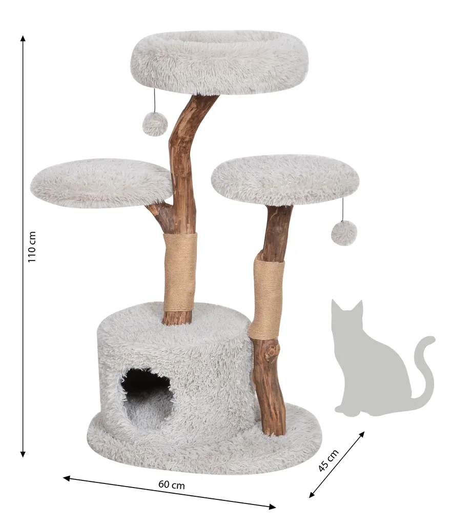 Dehner Premium Lovely Katzen-Kratzbaum Aufsteigen & Abschalten, Ca. 110 X 60 X 45 Cm, Holz/Plüsch/Sisal, Hellgrau