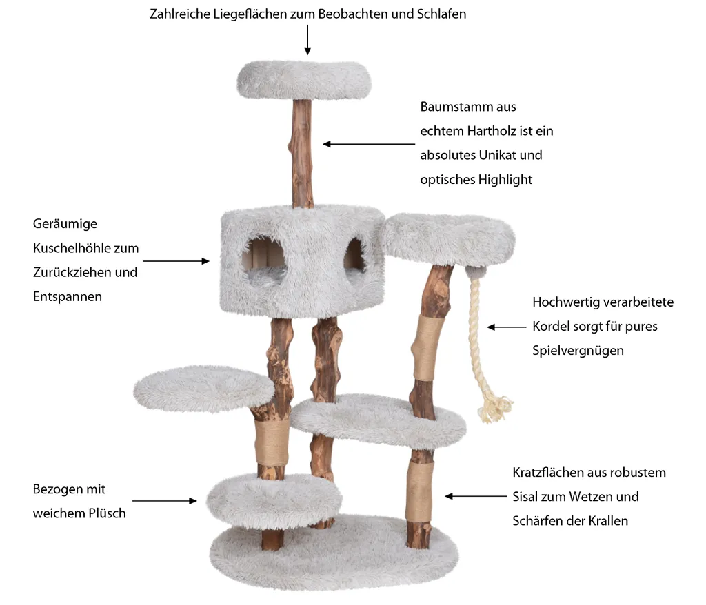 Dehner Premium Lovely Katzen-Kratzbaum Kraxeln & Relaxen, Ca. 164 X 80 X 60 Cm, Holz/Plüsch/Sisal, Hellgrau