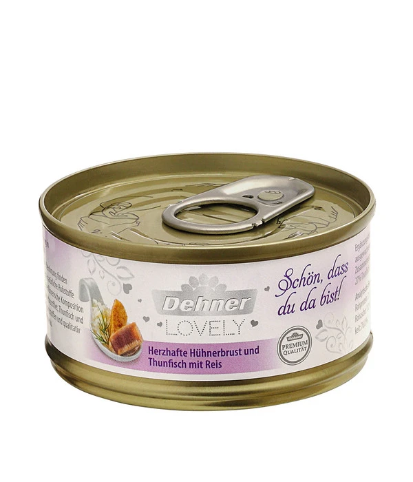 Delikate Rezeptur mit köstlicher Hühnerbrust und Thunfisch, dank Reis auch für Allergiker geeignet