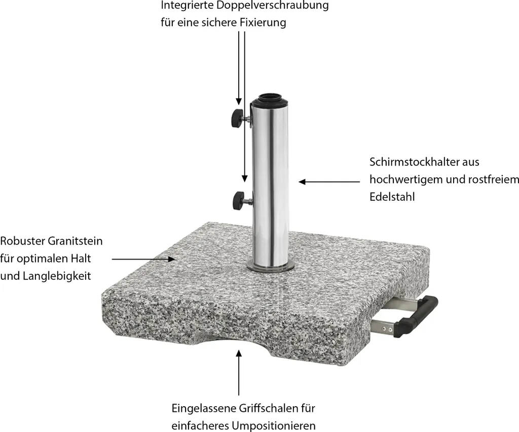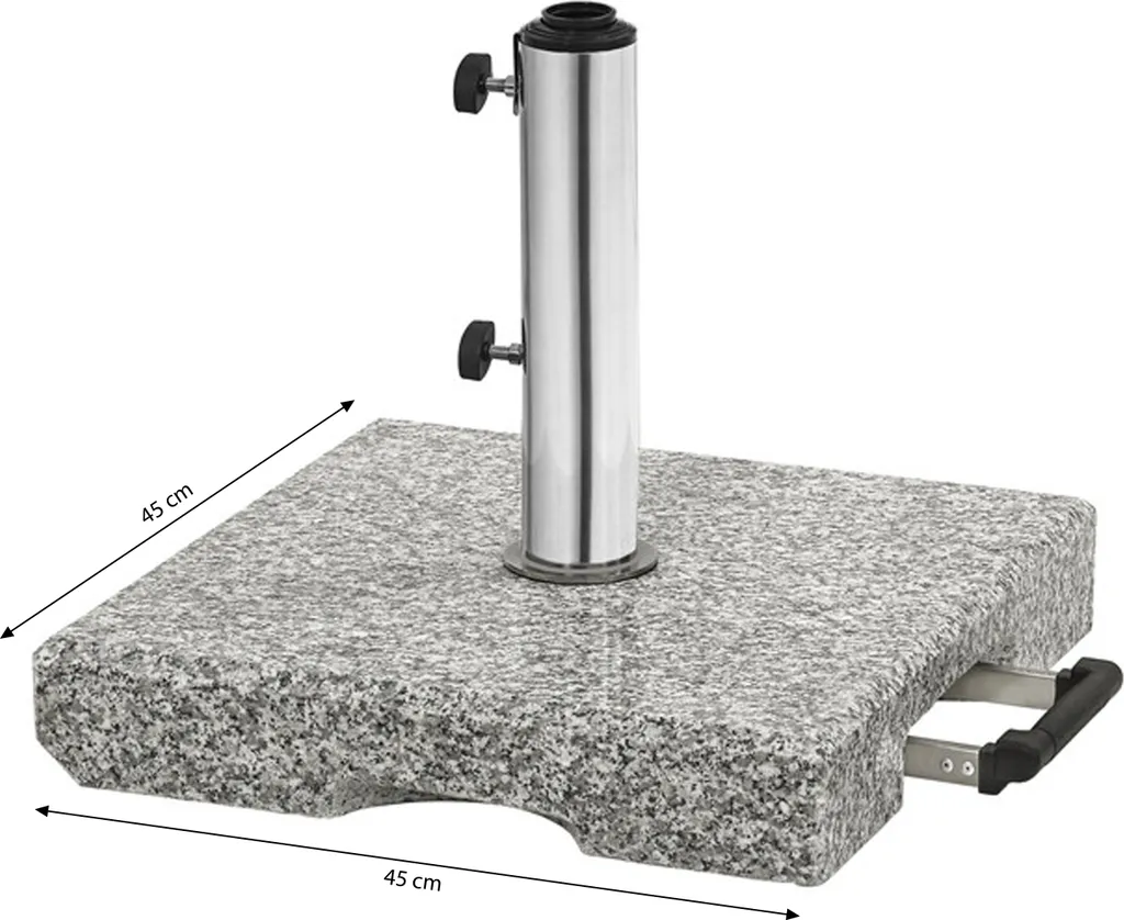 Dehner Sonnenschirm-Ständer, Eckig, Ca. 45 X 45 X 8 Cm, 40 Kg, Granit/Edelstahl, Grau/schwarz/silber