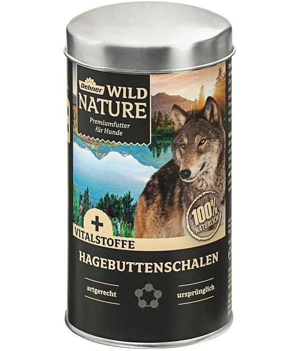 Im Rahmen der biologisch artgerechten Rohfütterung Barf können Sie die Dehner Wild Nature Hagebuttenschalen 250 g ebenfalls zum Ausgleich eines Vitamin C-Mangels verwenden. Apropos artgerecht: Wie alle Produkte von Dehner Wild Nature ist auch diese Premium Ergänzungsnahrung für Hunde ursprünglich und trägt den natürlichen Ernährungsgewohnheiten Ihres Hundes Rechnung – Sie können diese spezielle Hundetrockennahrung täglich also guten Gewissens zufüttern.