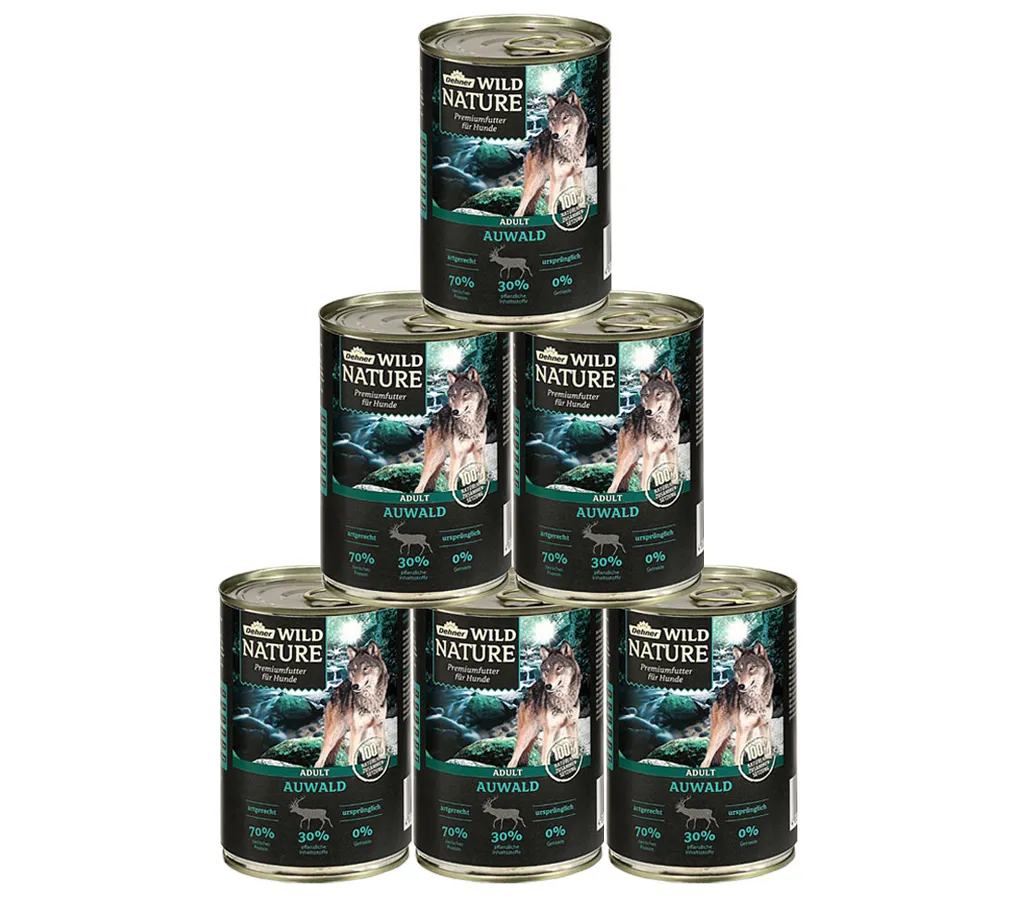 Dehner Wild Nature Hundefutter Adult, Auwald, 6 X 400 G (2.4 Kg)
