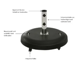 Dehner Sonnenschirm-Ständer, Eckig, Ca. 45 X 45 X 8 Cm, 40 Kg, Granit/Edelstahl, Grau/schwarz/silber