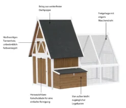 Dehner Hühnerstall Megi, Mit Freilaufgehege, Ca. 199 X 76 X 122 Cm, Tannenholz, Hellbraun
